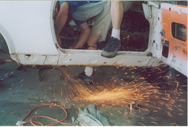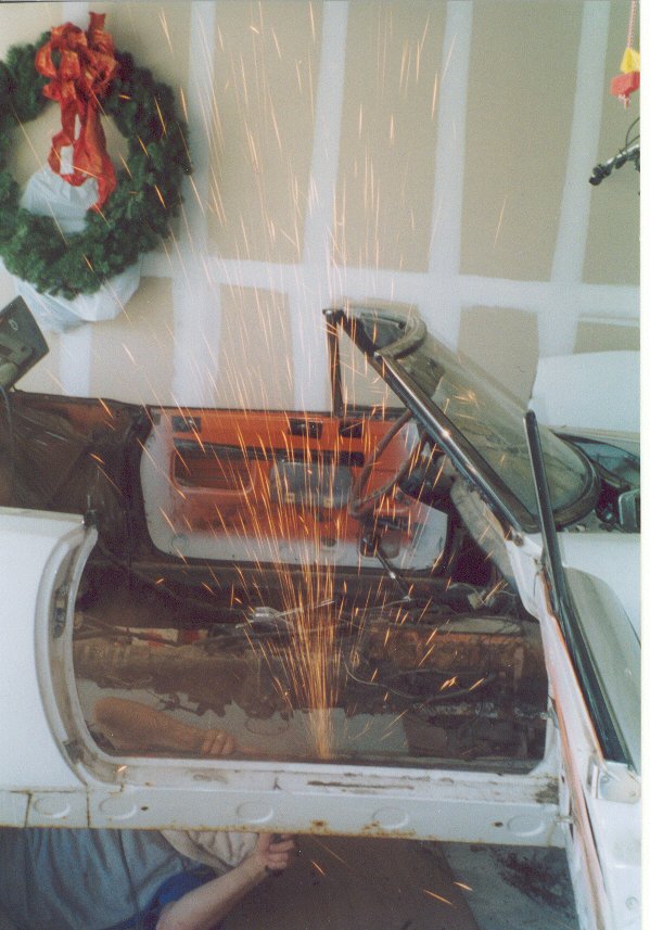 The floor was more or less entirely rusted away, all the way back to the rear frame members.